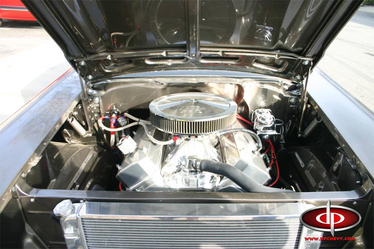 Eventually Gordon told Darryl from D&P that he really wanted the Nomad to go faster, a lot faster. After a lengthy discussion Darryl suggested that Gordon should sell the Nomad instead of cutting it up and turning it into a Pro Street car that could handle the torque and horsepower Gordon was looking for. After a search, a nice 57 Chevy 2 door sedan was located. The abandoned project was a nice solid car with minimal rust and damage. After putting a build plan together D&P built Gordon the boulevard bruiser you see here. Gordon was looking for a lot of usable horsepower so D&P utilized a GM Performance big block that was “re-worked” to produce an estimated 800+ horsepower that would run on premium fuel.