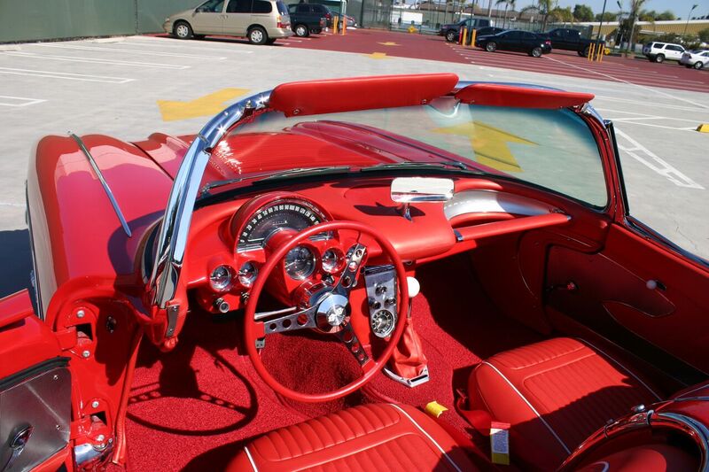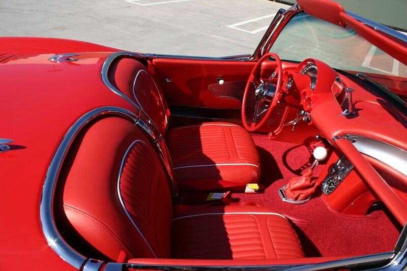 The Chevy Corvette has always been America’s sports car. Over the last several decades I’ve owned a bunch of em. We still own our 1962 vette that we bought in the 70’s from the original owner.  At our shop we’ve built a lot of Corvettes and I’ve driven almost every model including the new ZR1. As a loyal GM owner I must admit that the new Vettes definitely drive light years better than the vintage models. Those of us that build and drive classic cars understand the benefits of a modernized classic car. If you have any doubts go out and drive a stock classic and then go drive one that’s been updated. D&P was recently asked to finish a Steve and Kate’s 1958 Vette that was started at another shop. I suggested to Steve the owner that he would thoroughly enjoy the performance of a new GM Performance LS3 crate engine. A new GM 4L65E 4 speed automatic transmission was also installed. D&P installed a March Performance pulley system along with Street and Performance headers. The chassis was re-engineered with C4 Corvette suspension front and rear to give this early straight axle a much improved ride and handling characteristics. After completely straightening the body D&P painted Steve & Kate’s Vette with PPG base coat/clear coat red and white paint. Many of the trim items were purchased from Eckler’s. A Vintage Air A/C kit was installed for creature comfort. This 58 is somewhat rare as it has a factory power top. The interior and dash were upgraded with leather that matched the factory style. Steve and Kate wanted a “factory look” and from the exterior the new 58 looks completely stock.  This beautiful old Vette is far from stock and a good push on the go pedal and you quickly realize what 430 horsepower feels like. The Vette not only flies, but it handles like a modern sportscar and has good manners and all the dependability we expect from modern cars. We appreciate Steve & Kate taking their prized Corvette to a whole new level.