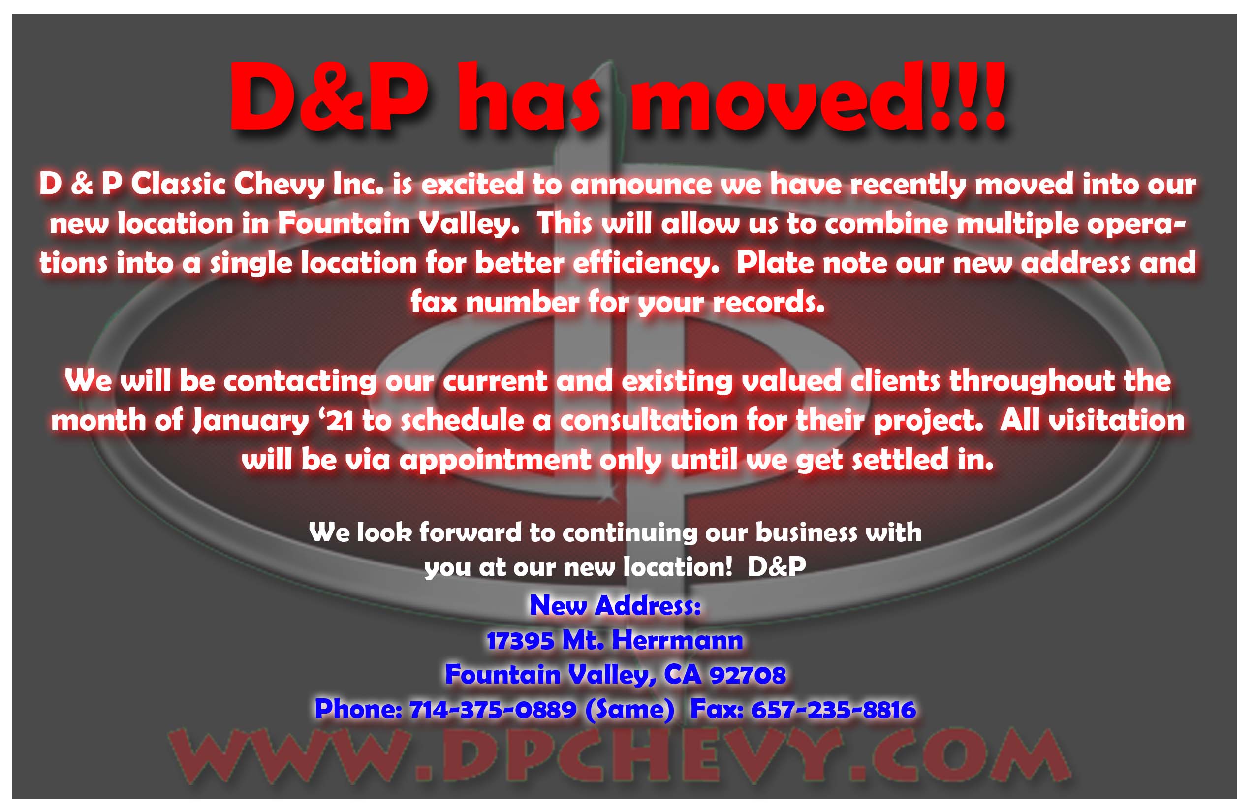 As of January 1, 2021, D&P has moved entire operation.